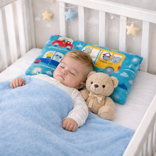 Oreiller bébé respirant double face – Coton doux & Minky à pois