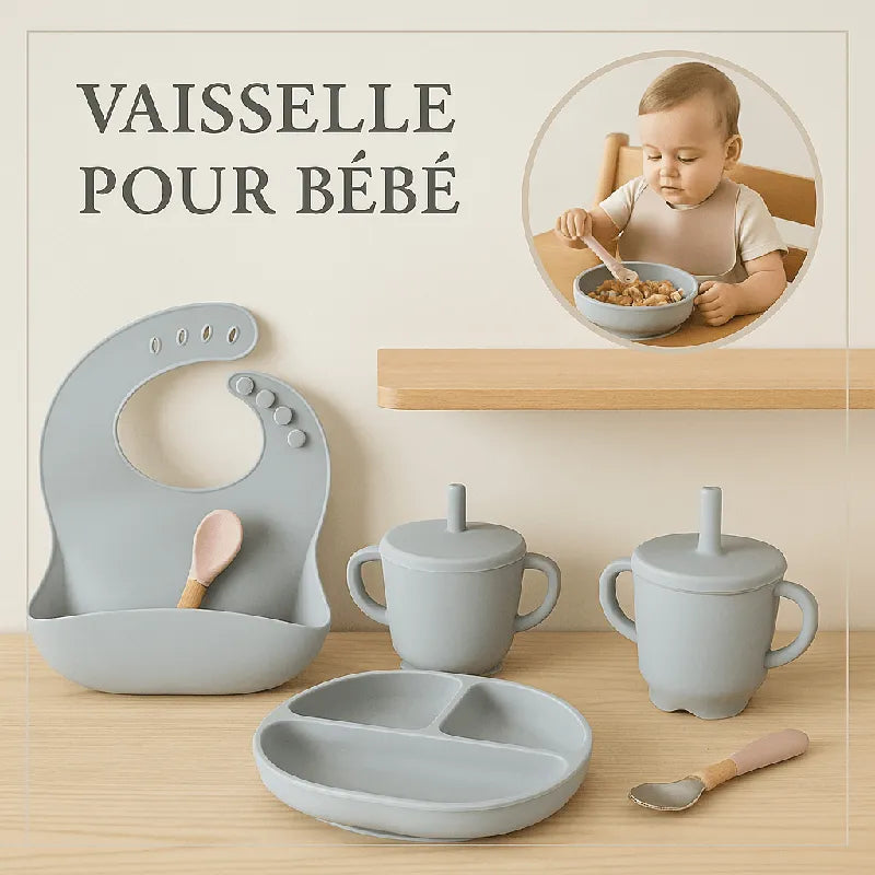 Offrez à votre enfant un coffret repas bébé complet pensé pour l’accompagner dans toutes les étapes de son apprentissage. Cet ensemble de vaisselle bébé fabriqué en silicone sans BPA est sécurisé, pratique et idéal pour le quotidien. C’est l’allié des parents modernes, du premier repas aux aliments solides.